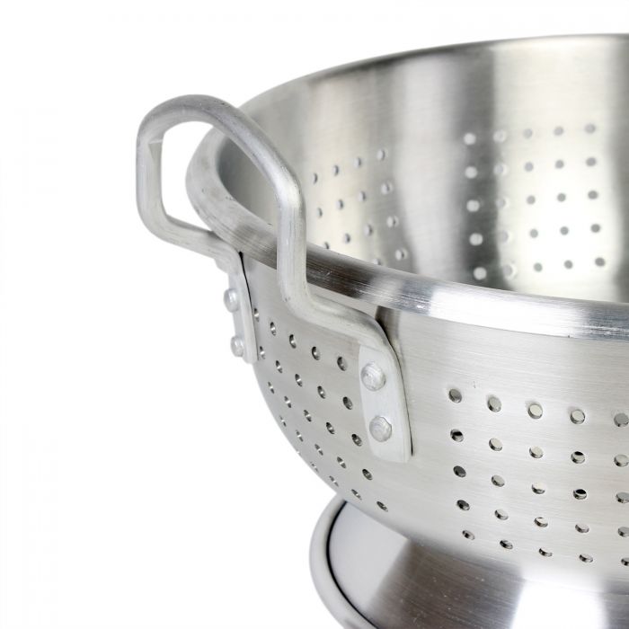 Design: Das größere Design dieses robusten Aluminiumsiebs macht es auch ideal zum Auftauen von Garnelen oder zum Abspülen von Hühnchen.