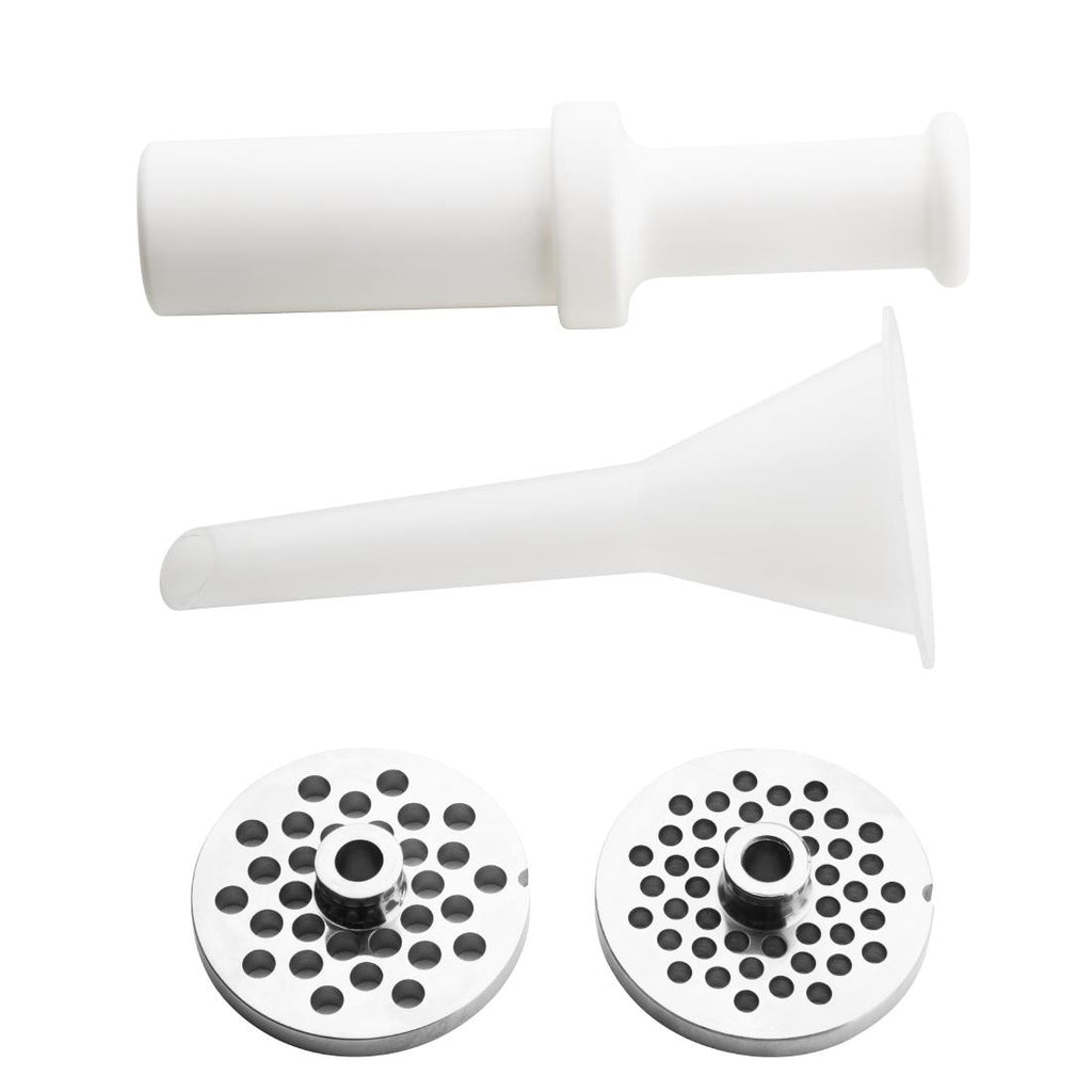 Die praktische Umkehrfunktion ist ideal, wenn Sie besonders grobes oder fettiges Fleisch zerkleinern möchten, und die 6 mm und 8 mm großen Hackscheiben sorgen dafür, dass Sie die Größe erhalten, die Sie benötigen. Für zusätzliche Vielseitigkeit wird der Fleischwolf mit drei Wurstfülldüsen und einem Adapter geliefert – ideal für die Herstellung authentischer Metzgerwürste. Einfach zu verwenden, zu reinigen und zu warten.