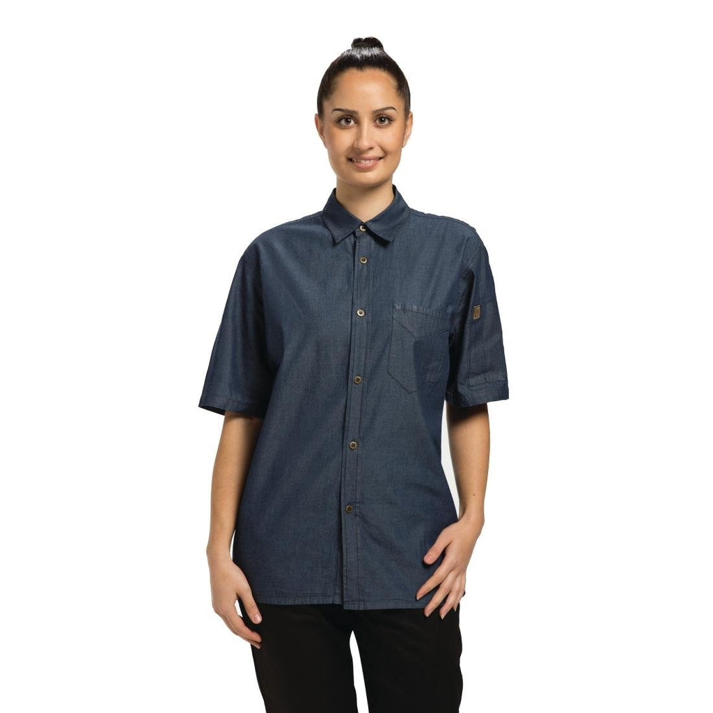 Chef Works Detroit Unisex Jeanshemd Kurzarm Blau XS