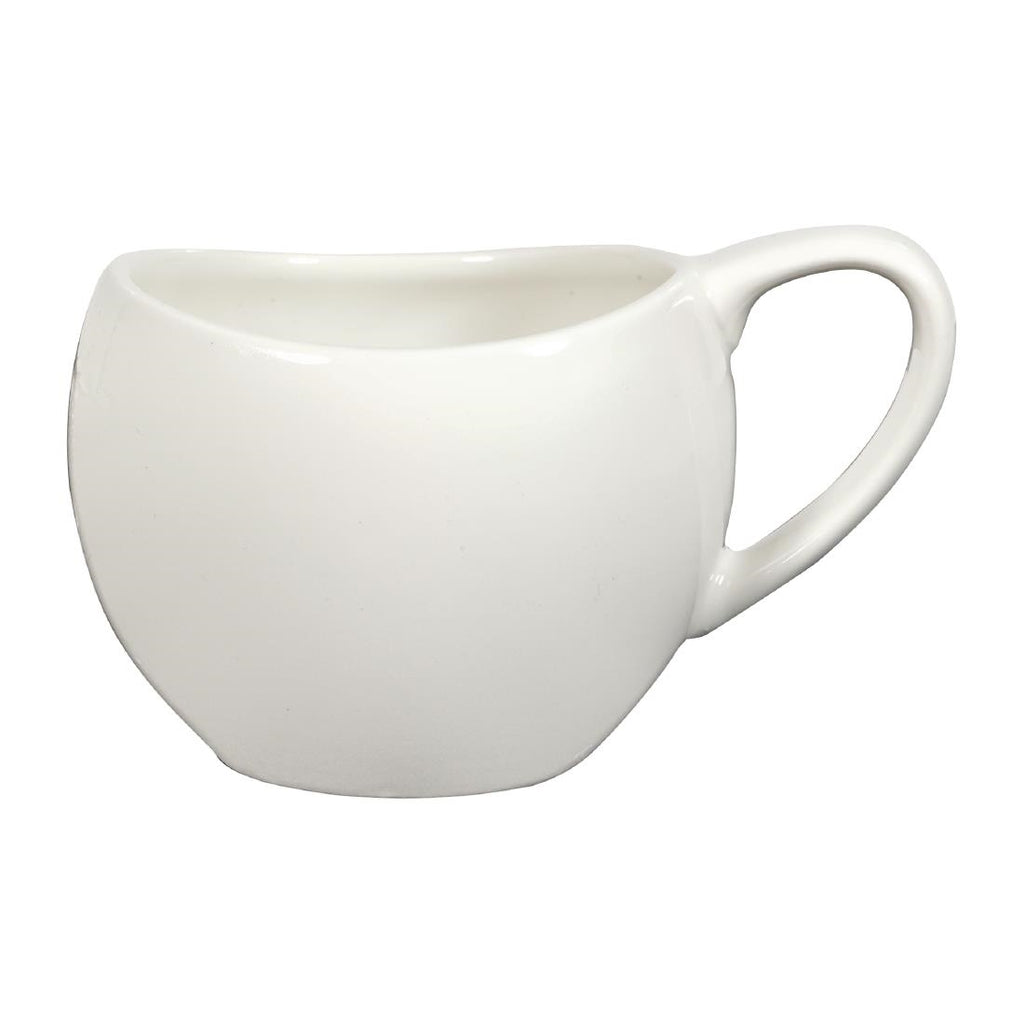 Dieser klassische weiße 10,5-Unzen-Becher von Churchill ist in den Größen 2,5 bis 10,5 Unzen erhältlich und zeichnet sich durch ein modernes Design aus, das aus der Masse hervorsticht. Der Rand der Lippe ist leicht umgedreht, um ein bequemes Trinken zu ermöglichen, und der Griff ist nach oben geneigt, sodass er auch bequem gehalten werden kann. Das Gesamterscheinungsbild der Tasse ist elegant und klassisch, sodass sie perfekt in ein zwangloses Café oder ein gehobenes Hotel passt. Darüber hinaus ist der Becher extrem langlebig und spülmaschinen- und mikrowellengeeignet für den täglichen Gebrauch und spart Zeit und Energie bei manuellen Eingriffen.