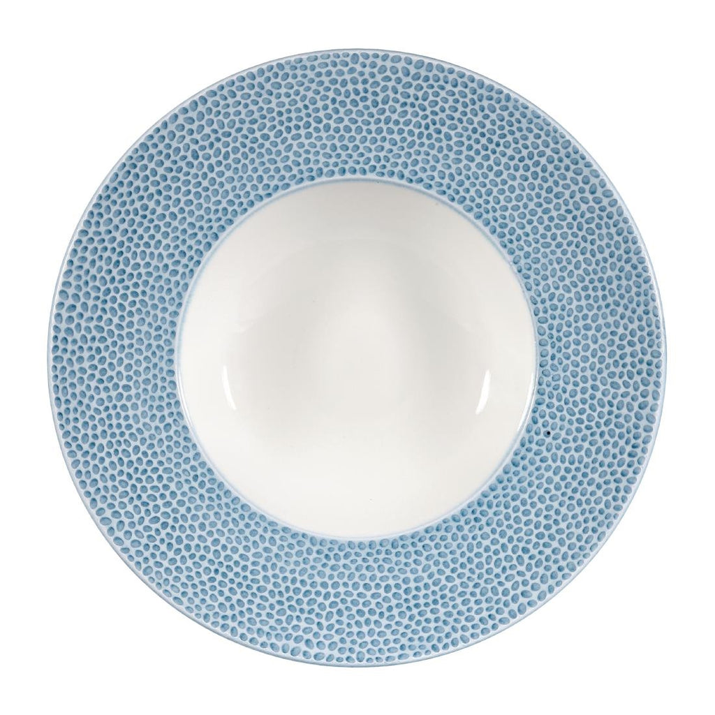 Churchill Isla Ocean Blue Schüssel mit breitem Rand. Teil einer von der Küste inspirierten Geschirrserie. Abgerundet mit einem gesprenkelten Effekt. Verkauft in Packungen mit 12 Stück.