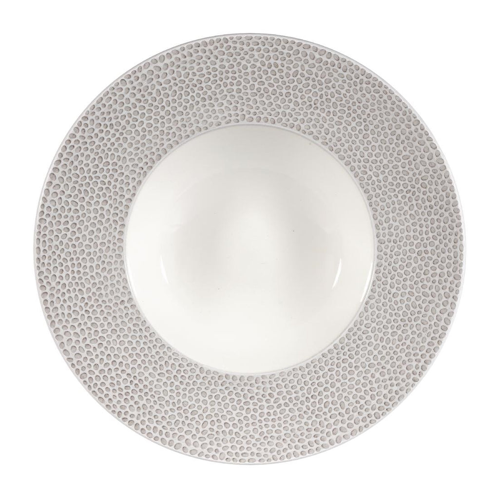 Churchill Isla Shale Grey Wide Rim Bowl. Teil einer von der Küste inspirierten Geschirrserie. Abgerundet mit einem gesprenkelten Effekt. Verkauft in Packungen mit 12 Stück.