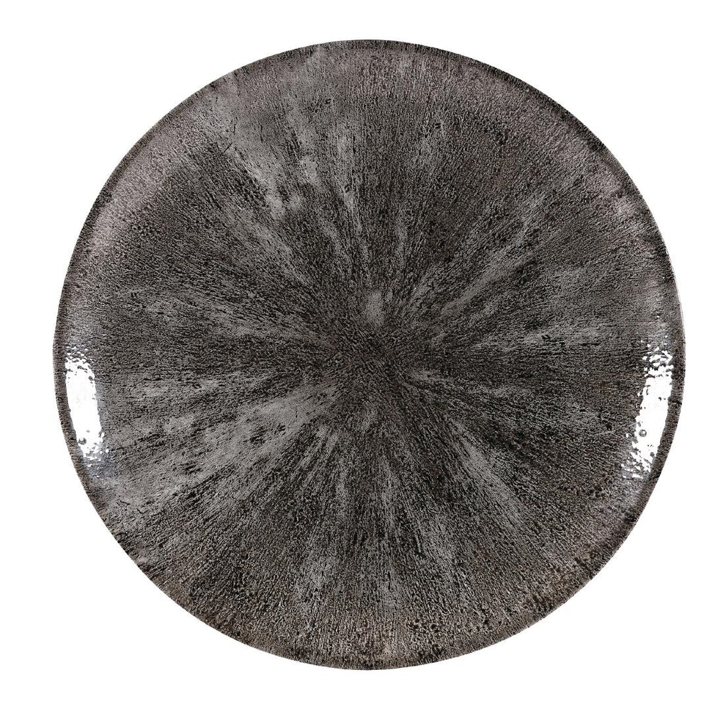 Quarzschwarzes Geschirr mit einem auffälligen Sonnenschliffmuster, das den Blick auf die Mitte lenkt und Ihr Essen perfekt umrahmt. Super verglast, mit Unterglasurmuster für langanhaltende Ergebnisse. Mikrowellen- und spülmaschinenfest. Verkauft in Packungen mit 12 Stück.