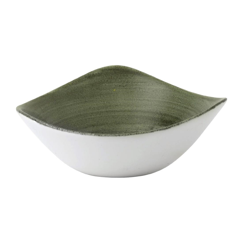 Brechen Sie mit den kleinen Patina Lotus-Tellern von Churchill mit der Tradition des klassischen Weißgeschirrs. Die Teller sind so gestaltet, dass sie das Aussehen jedes Gerichts hervorheben, mit moderner Form und einer brünierten grünen Farbgebung, die lebendige Zutaten zum Leben erweckt.