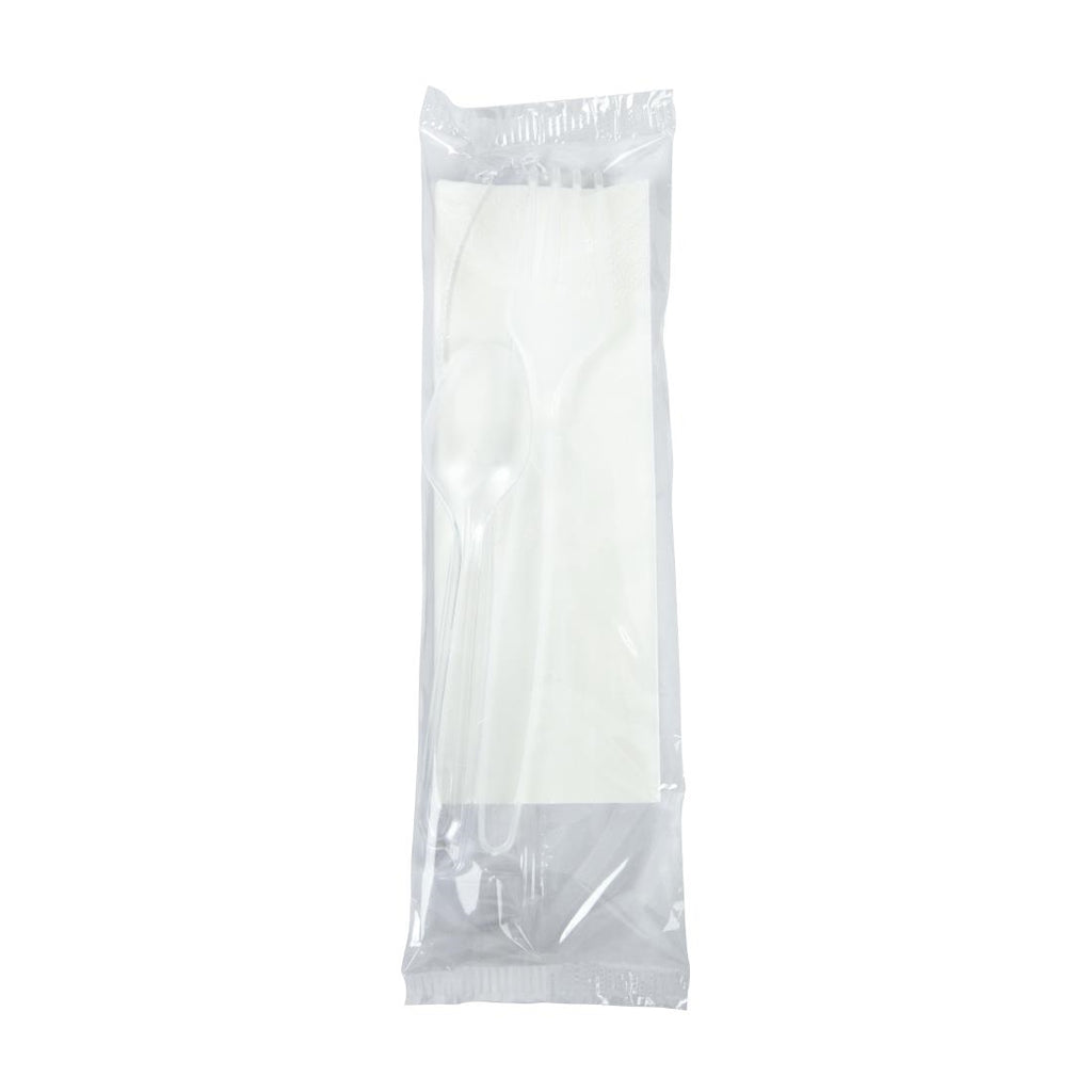 Bieten Sie Ihren Kunden eine praktische und umweltfreundliche Lösung für Lebensmittel zum Mitnehmen mit dieser Packung mit 250 verpackten Einwegbestecksets von eGreen Deluxe. Jedes Set ist einzeln verpackt, sodass während der Lagerung oder Lieferung keine Kontaminationsgefahr besteht. Daher sind sie ideal für Take-aways, mobile Caterer, Event-Catering, Imbisswagen usw.