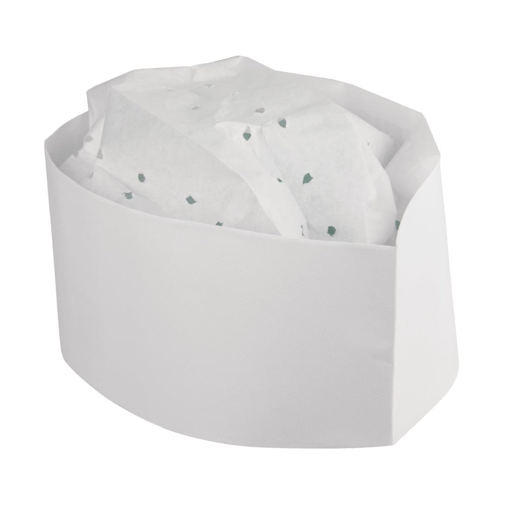 Diese Futterhüte in Einheitsgröße sind praktisch für den einmaligen Gebrauch und können in einer Packung mit 100 Stück weggeworfen werden. Sie sind die perfekte Kopfbedeckung für den professionellen Koch in jeder Umgebung, sei es in der Küche, im Restaurant oder im Pub. Hergestellt für den Handel mit hochwertiger Verarbeitung.