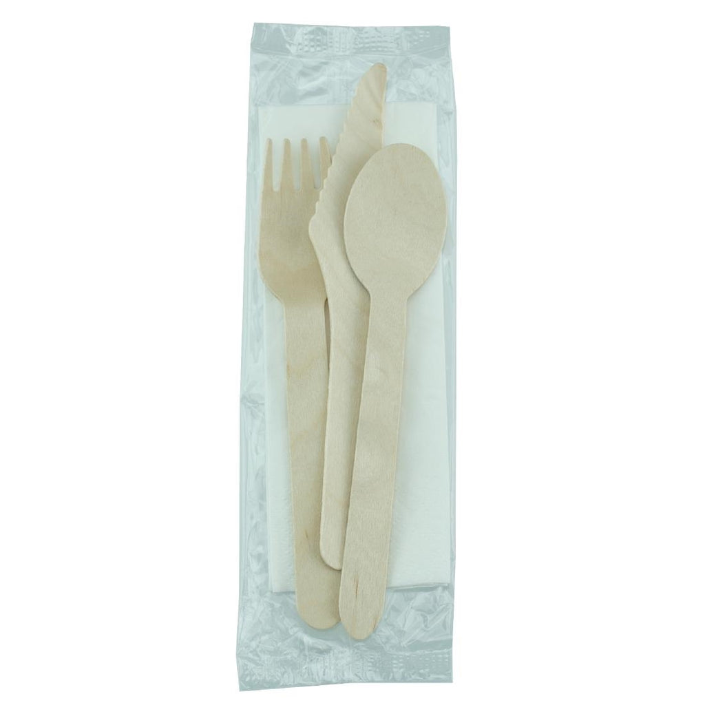 eGreen Einzeln mit Biofilm verpacktes 4-in-1-Holzbesteckset (250 Stück)