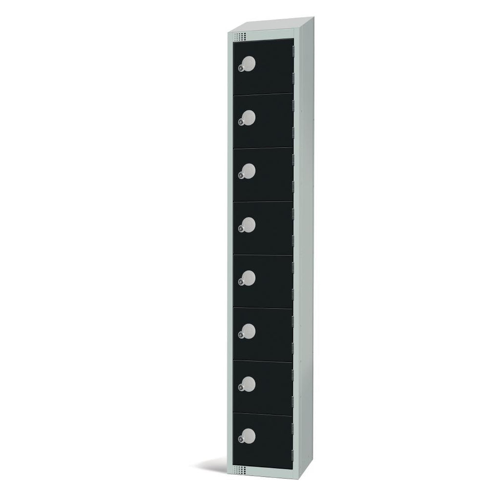 Elektronisches Elite-Kombinationsschließfach mit acht Türen und abgeschrägter Oberseite in Schwarz