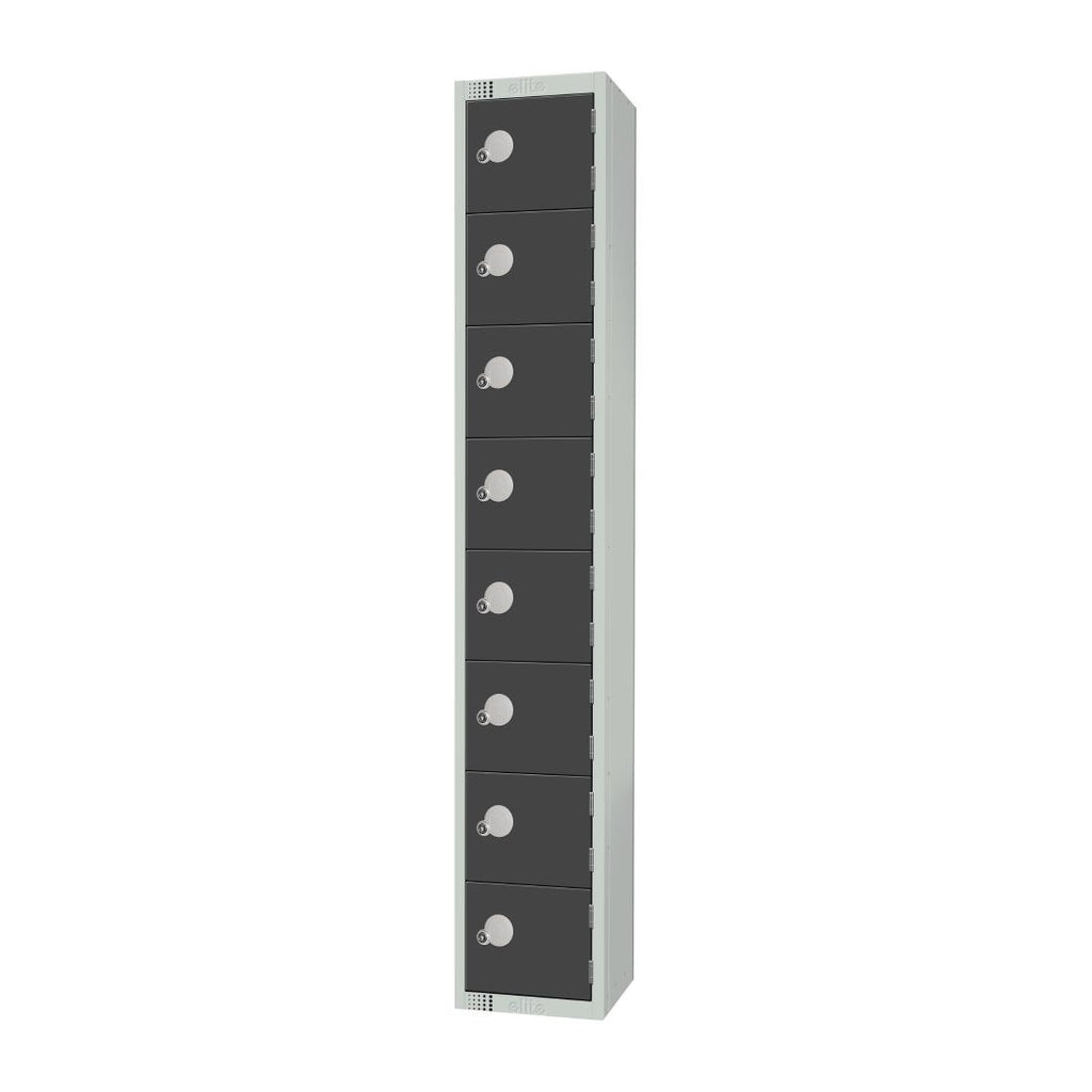 Elite-Schließfach mit acht Türen, manuellem Zahlenschloss, Graphitgrau