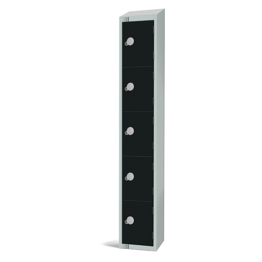 Elite-Münzrückgabeschließfach mit fünf Türen und abgeschrägter Oberseite in Schwarz