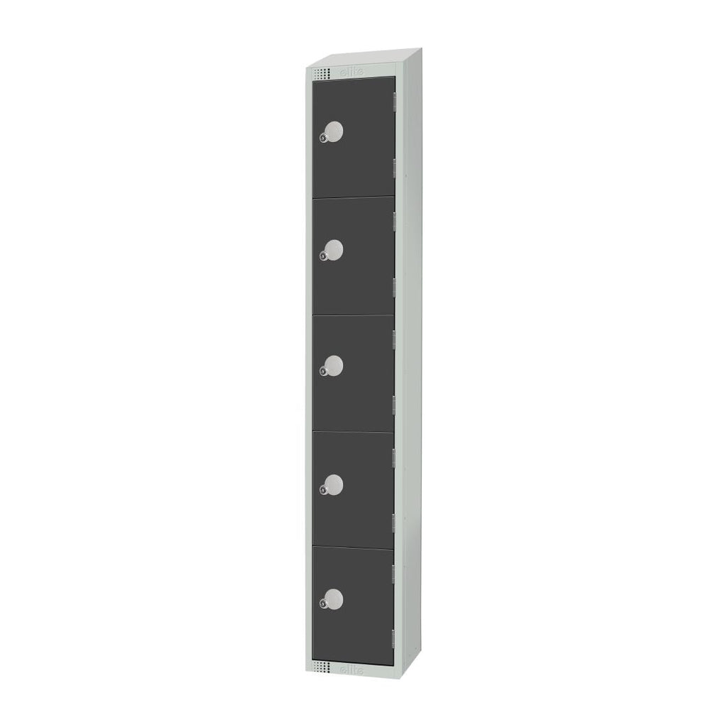 Elite Schließfach mit Vorhängeschloss und fünf Türen, Graphitgrau, mit abgeschrägter Oberseite