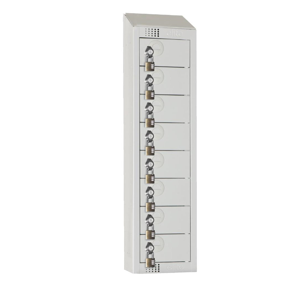 Elite-Spind für persönliche Gegenstände, 8 Türen, graues Vorhängeschloss, schräge Oberseite