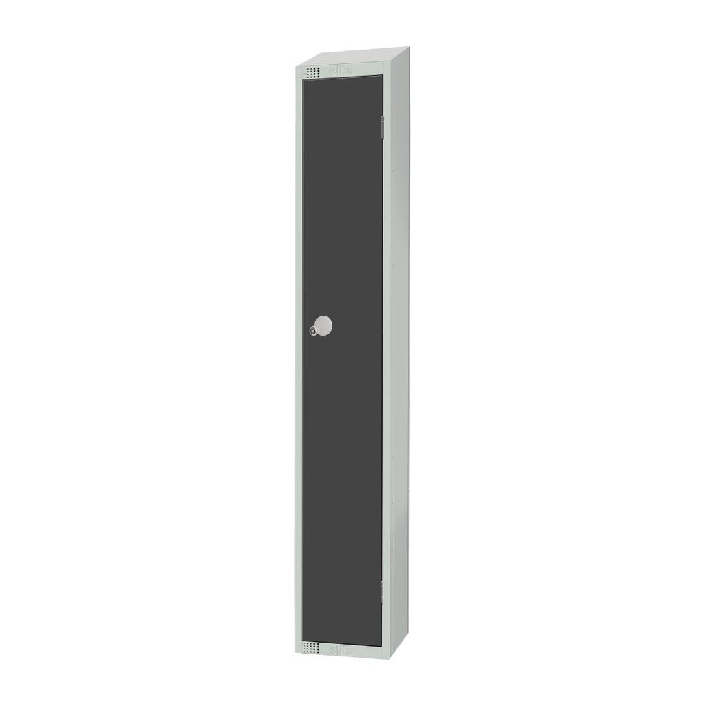Eintüriger Elite-Camlock-Schließfach in Graphitgrau mit abgeschrägter Oberseite
