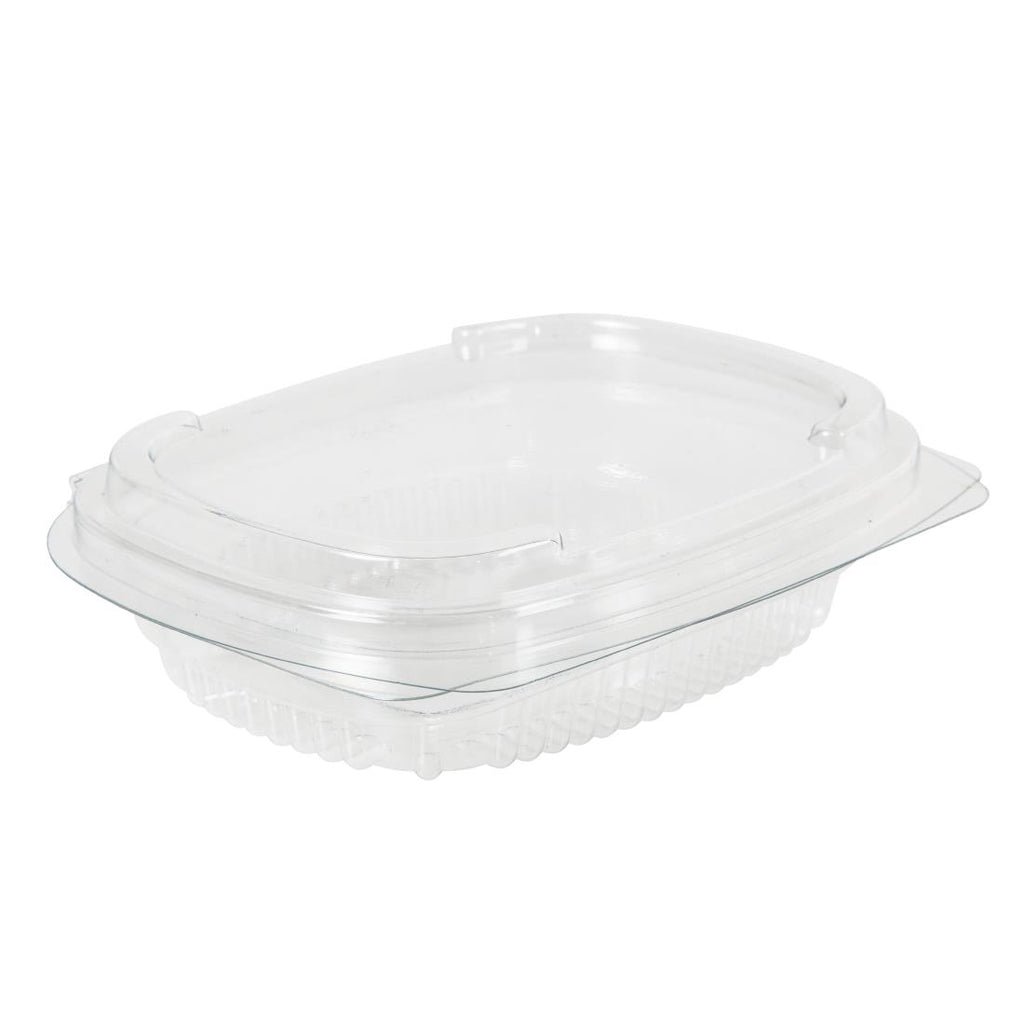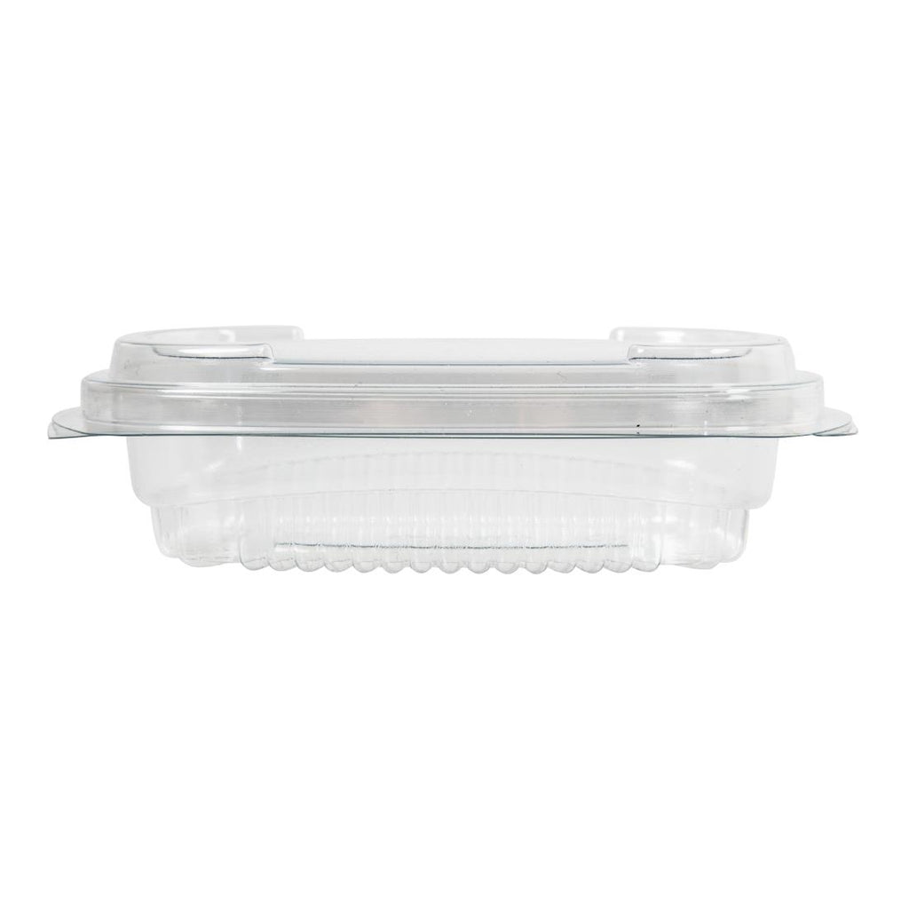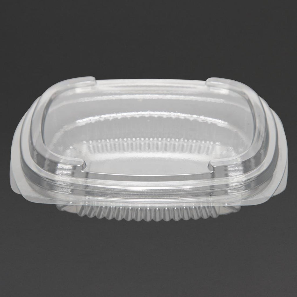 Eine Packung mit 600 x 4 Unzen stilvollen, praktischen und erschwinglichen Feinkostschalen aus 90 % recyceltem PET. Ideal zum Servieren von Salaten, Nudelgerichten und Obst.