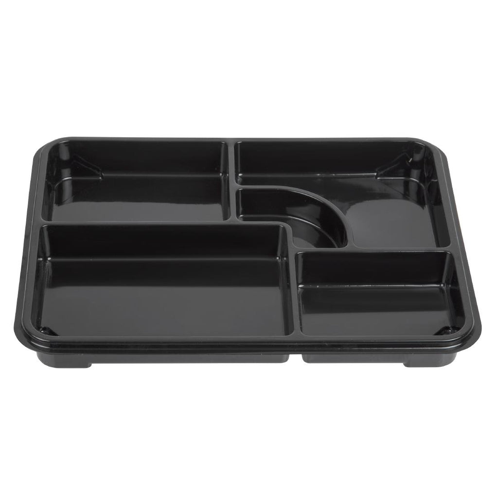 Eine Packung mit 100 x Bento-Boxen aus recyceltem Kunststoff. Diese Boxen sind nach Gebrauch vollständig recycelbar. Perfekt zum Servieren von Sushi.