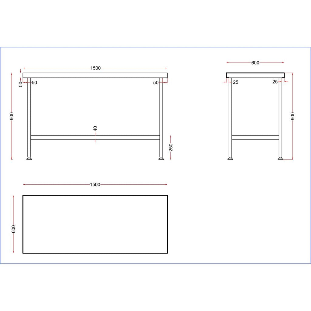 Dieser 1500 mm große Mitteltisch eignet sich perfekt zum Anrichten großer Mengen an Mahlzeiten in den geschäftigsten Küchenumgebungen. Dieser große Tisch wurde in Großbritannien vom renommierten Hersteller Holmes hergestellt und bietet über die gesamte Breite unter der Ablage viel Stauraum. Der 1,2 mm dicke Edelstahl wird von Holmes-Handwerkern in York festgeschweißt, sodass Sie ein vollständig montiertes Produkt von extremer Haltbarkeit und Robustheit erhalten. Abgerundet mit verstellbaren Metallfüßen.