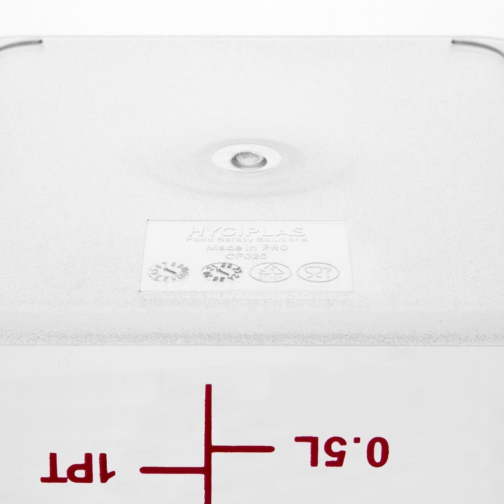 Diese Behälter eignen sich perfekt zur Aufbewahrung von Lebensmitteln wie Soßen und Dressings. Dank der abgestuften, eingestanzten Maße können Sie die Lebensmittelmenge im Behälter genau abmessen und in Stoßzeiten Zeit sparen. Der aus robustem Polycarbonat-Kunststoff gefertigte Behälter ist sehr robust und langlebig, um eine lange Lebensdauer in Ihrer Küche zu gewährleisten. Die luftdichten, farbcodierten Deckel (separat erhältlich) halten Lebensmittel länger frisch und ermöglichen eine schnelle und einfache Identifizierung bestimmter Lebensmittelarten wie Milchprodukte oder Fisch. Der Behälter verfügt über einen strukturierten Boden zum Schutz vor Verrutschen, wodurch das Risiko von Verschüttungen verringert wird.