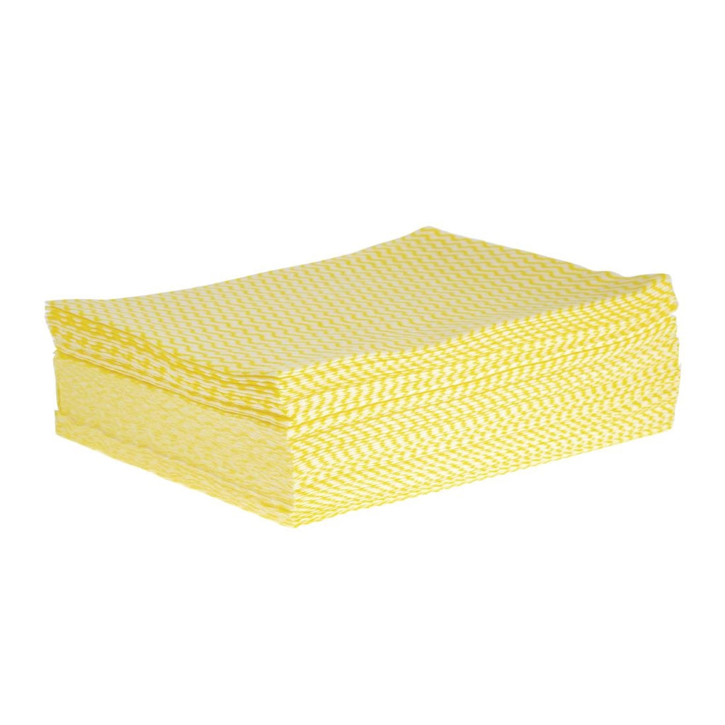 Diese gelben, lebensmittelechten Solonet-Tücher von Jantex sind saugfähige Reinigungstücher mit Polyestergewebe, ideal zum Reinigen von Oberflächen und Geschirr und helfen Ihnen, Ihre Küche sauber und hygienisch zu halten. Diese Packung mit 50 Tüchern eignet sich perfekt für stark frequentierte Catering-Umgebungen. Das gelbe Design ermöglicht es Ihnen, Ihre Reinigungsgeräte farblich zu kennzeichnen, um eine hygienischere und sauberere Umgebung zu schaffen.
