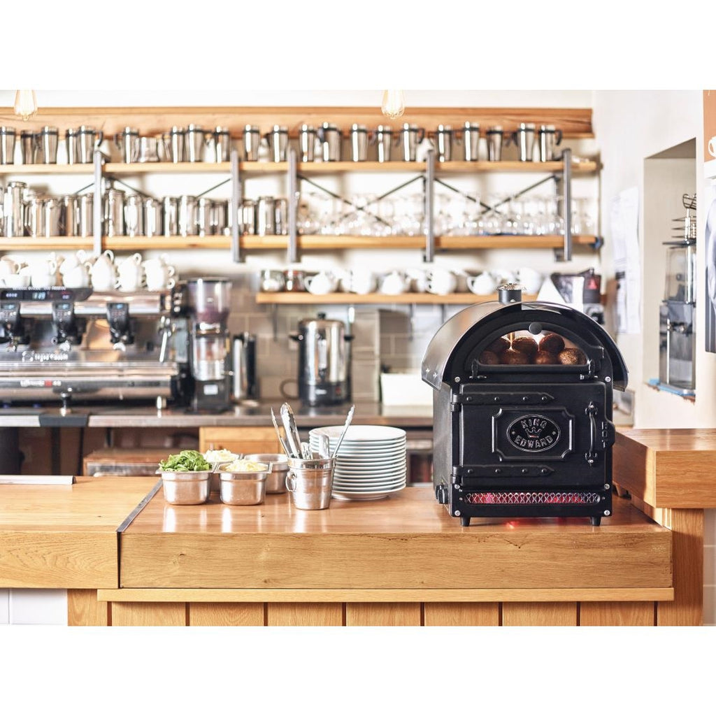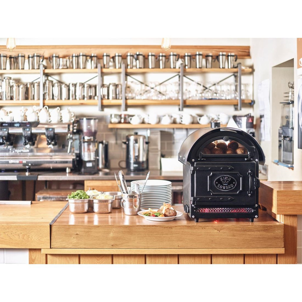 Dieser kleine elektrische Kartoffelbäcker von King Edward bereitet in etwa 55 Minuten perfekte Ofenkartoffeln zu, heiß und servierfertig. Es handelt sich um einen hocheffizienten und vielseitigen Konvektionsofen, der auch zum Garen anderer Lebensmittel verwendet werden kann. Der von Hand gefertigte Ofen besteht aus emaillierten, farbigen Paneelen, massiven Gusstüren und einem Innenraum aus Edelstahl. Außerdem beleuchtet er die Kartoffeln, sodass Sie wissen, wann sie servierfertig sind.
