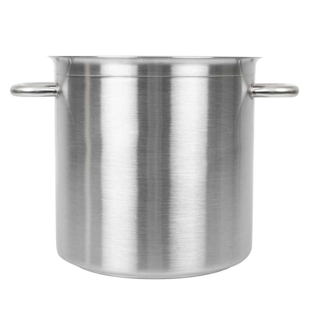 Der Suppentopf wurde speziell für Langlebigkeit und Zuverlässigkeit entwickelt und zeichnet sich durch eine äußerst stabile Konstruktion aus, sodass maximale Kapazitätsbelastungen keine Probleme bereiten. Dank der extrem robusten, geschweißten Griffe lässt sich der Topf leicht positionieren, selbst wenn Sie den Topf bewegen müssen, während sich der Inhalt noch darin befindet. Und dank der langlebigen Edelstahlkonstruktion kann der gesamte Topf in eine große Spülmaschine oder Gerätespülmaschine gestellt werden, um ihn am Ende eines geschäftigen Service schnell und einfach zu reinigen.