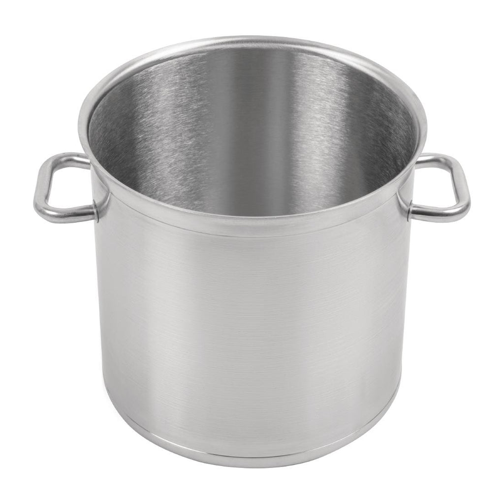 Mit einem Fassungsvermögen von 10,8 Litern eignet sich dieser Suppentopf von Matfer Bourgeat hervorragend zum Kochen großer Mengen an Speisen wie Suppen, Eintöpfen oder Soßengerichten. Die beiden Tragegriffe erleichtern den Transport des Topfes zwischen Kochfeldern oder Servierflächen; Dies ermöglicht eine sichere und einfache Art des Kochens.