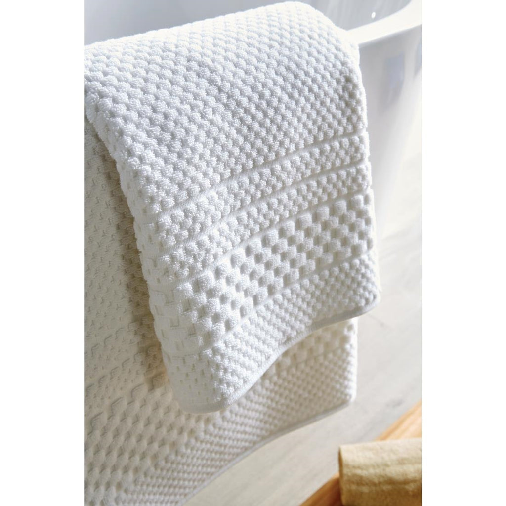 Unsere Checkers-Handtücher zeichnen sich durch ein quadratisches Webmuster aus, das für eine reich strukturierte Oberfläche sorgt. Gewicht: Handtücher: 600 g/m²; Badematte: 1000g/m². Material: 100 % Baumwolle. Farbe: Weiß.