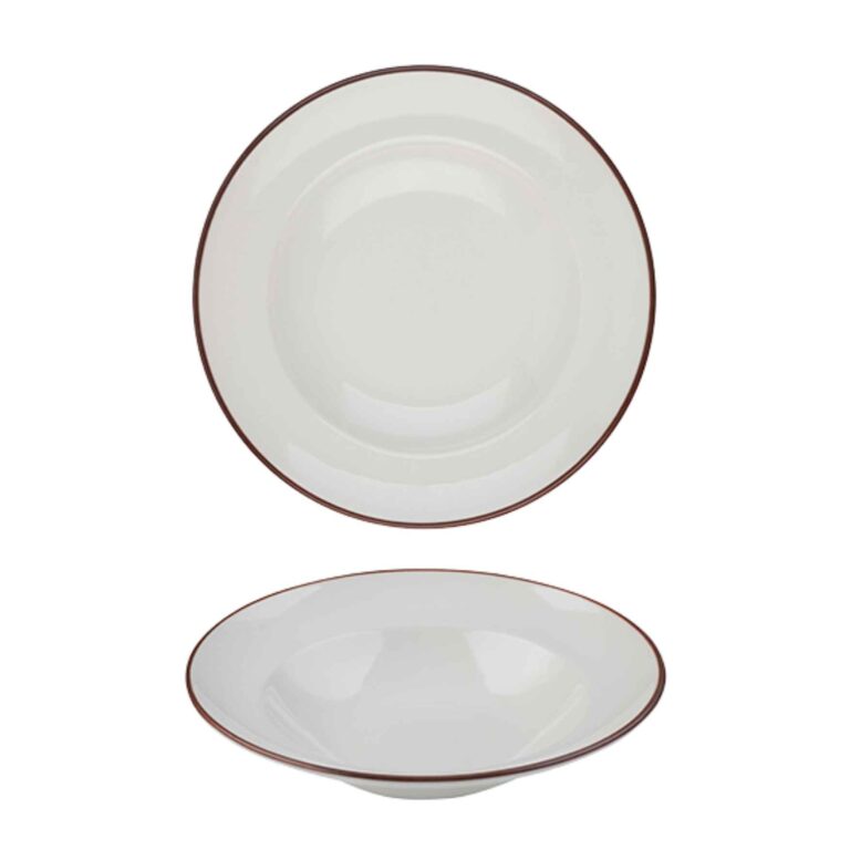 Serve pasta dishes with sophisticated flair using the Modest Brown Pasta Plate, featuring a clean-lined design and a warm, rich brown band that effortlessly evokes a sophisticated country pub feel. This 28cm (11") plate, with a generous 560ml (19 ¾oz) capacity, combines contemporary style with commercial durability, ensuring pasta is presented beautifully. The robust ceramic construction is designed to withstand the rigorous demands of busy kitchens and dining rooms. Ideal for Italian restaurants, hotels, and general dining establishments.