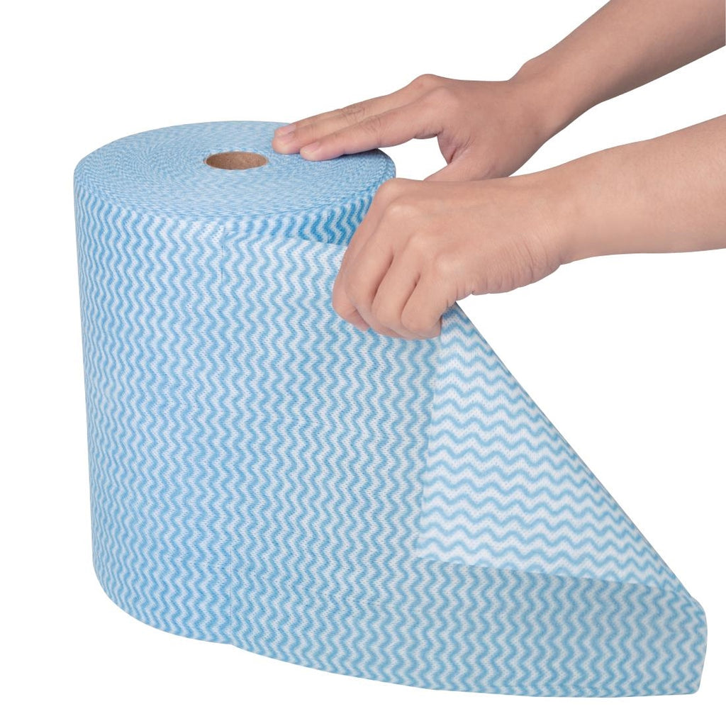 Ergänzen Sie Ihr Restaurant, Ihre Bar oder Kneipe mit praktischer Reinigungsausrüstung mit der blauen Vliesstoffrolle von Nisbets Essentials. Dank ihrer saugfähigen Konstruktion ist jedes Tuch in der Lage, versehentlich verschüttete Flüssigkeiten oder Rückstände von Reinigungschemikalien schnell aufzuwischen, ohne Fusseln zu hinterlassen – so können Ihre Mitarbeiter schnell und einfach Oberflächen sauber und aufgeräumt halten.