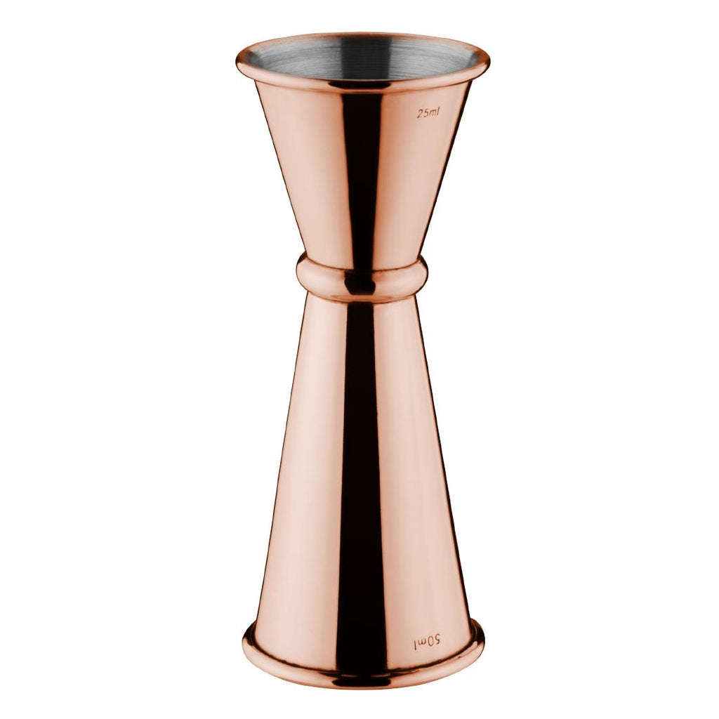 Messen Sie Schüsse gleichmäßig mit diesem Jigger mit Kupferband von Olympia. Da das Messgerät doppelendig ist, ist Ihre Bar in der Lage, Doppel- und Einzelportionen auszuschenken – um Getränke genau so zuzubereiten, wie Ihre Kunden sie mögen.