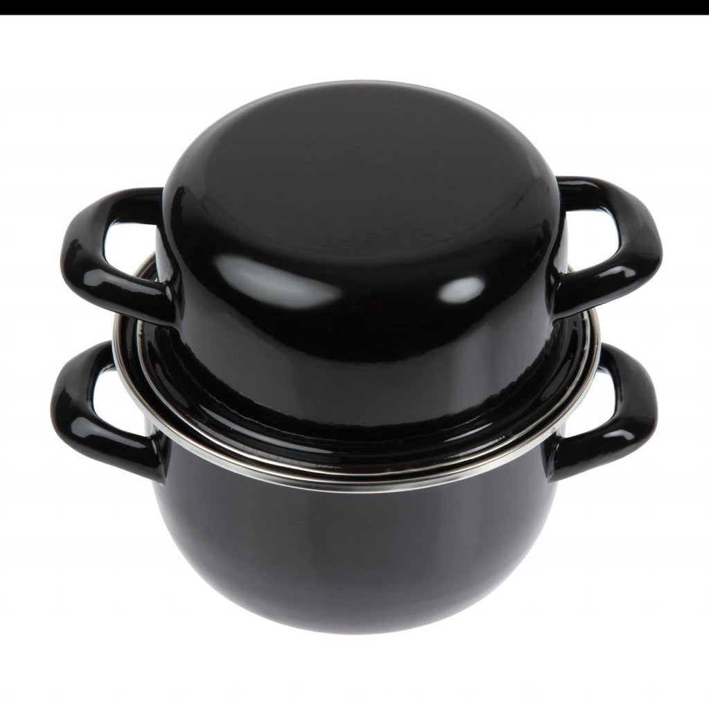 Nach dem Servieren können die Gäste den Deckel einfach abnehmen und ihn umdrehen, um ihn als Schüssel für ihre leeren Schalen zu verwenden. Dieser schwarze Muscheltopf ist ofen- und spülmaschinenfest und daher vielseitig einsetzbar und leicht zu reinigen. Er ist ein Muss, wenn Sie Schalentiere ernsthaft servieren möchten.