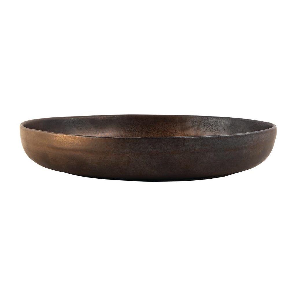 Metallisches Geschirr mit Bronzeeffekt und einer unvollkommenen handgefertigten Form.