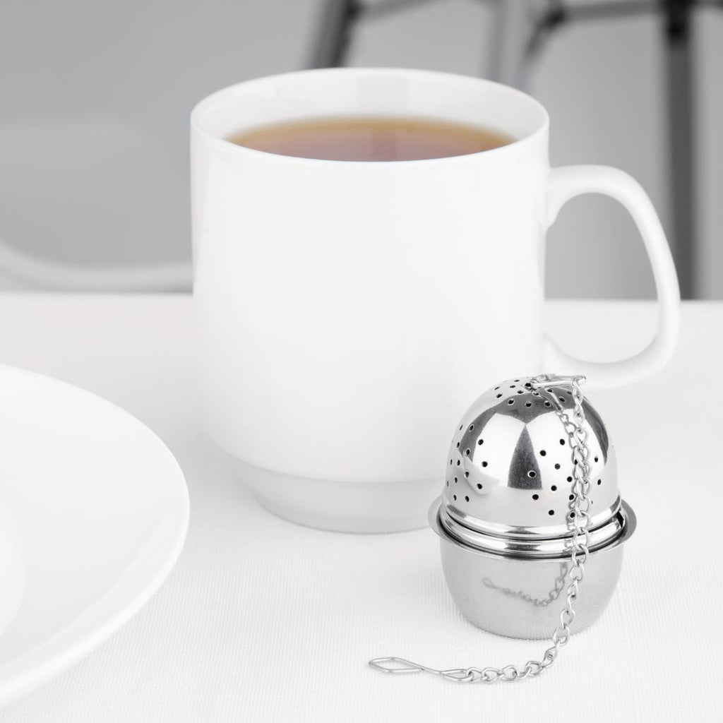 Und mit einer Kette und einem Haken ist das Sieb auch praktisch – so können Sie das Sieb gerade und sicher in Ihrer Teetasse oder Kanne halten!