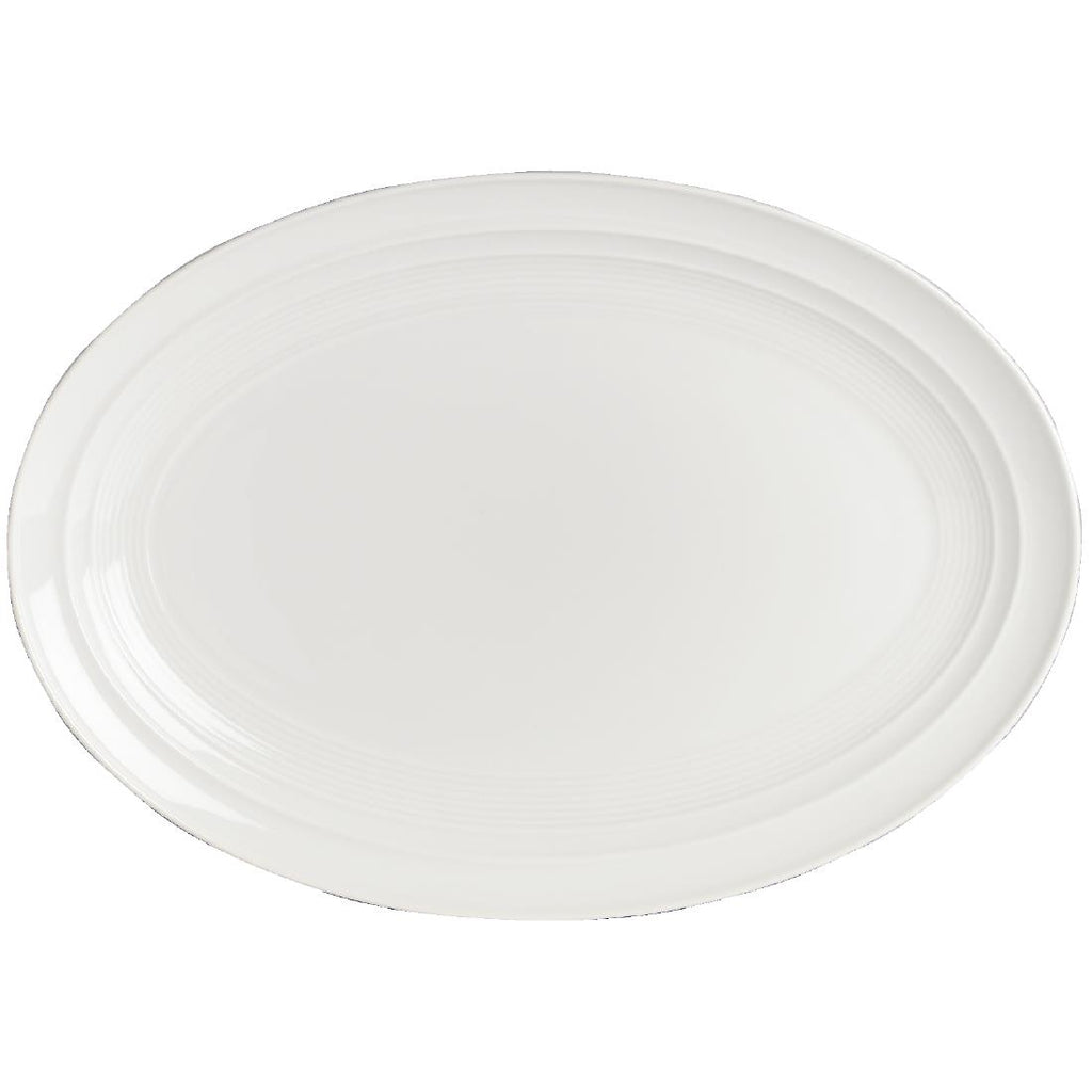 Diese ovale 17,75-Zoll-Porzellanplatte aus der Aura-Kollektion schafft einen hervorragenden Rahmen für feines Essen und verleiht jedem Gericht einen stilvollen Akzent. Mit einer weißen Oberfläche und einer haltbaren reflektierenden Glasur wurde Aura entwickelt, um den Anforderungen einer modernen Speisenpräsentation in Kombination mit zeitgenössischem Design gerecht zu werden mit klassischen, praktischen Features.