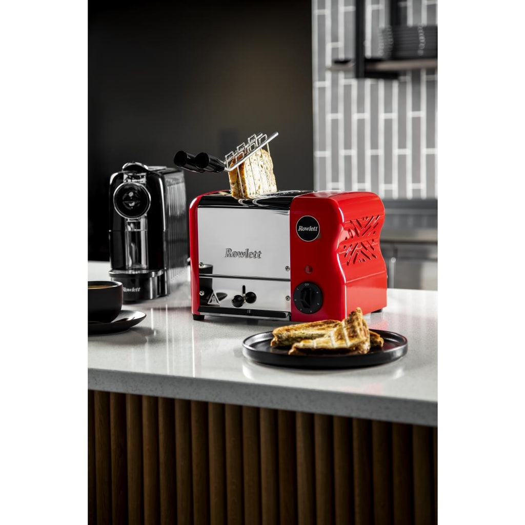 Rowlett Esprit 2-Schlitz-Toaster, Verkehrsrot, mit 2 zusätzlichen Elementen und Sandwichkäfig