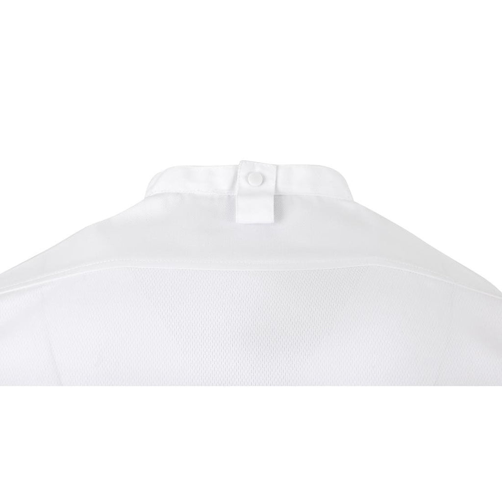 Introduce smart and modern clothing to your staff uniform with the short-sleeve chef jacket from Southside's Harlem range (UK S). Thanks to its white colour, band collar and relaxed fit, the chef jacket provides a contemporary look and maintains excellent comfort throughout hours of wear.