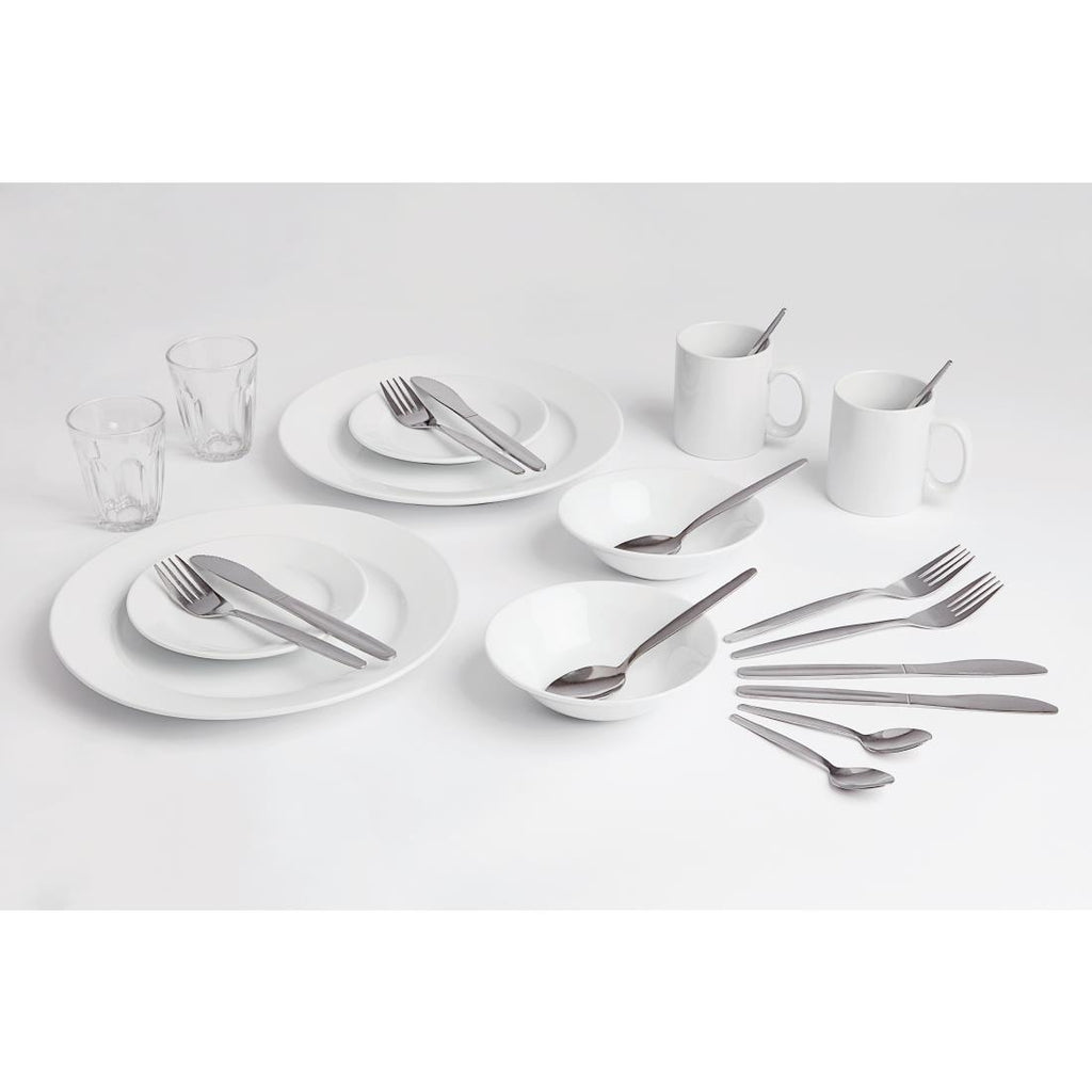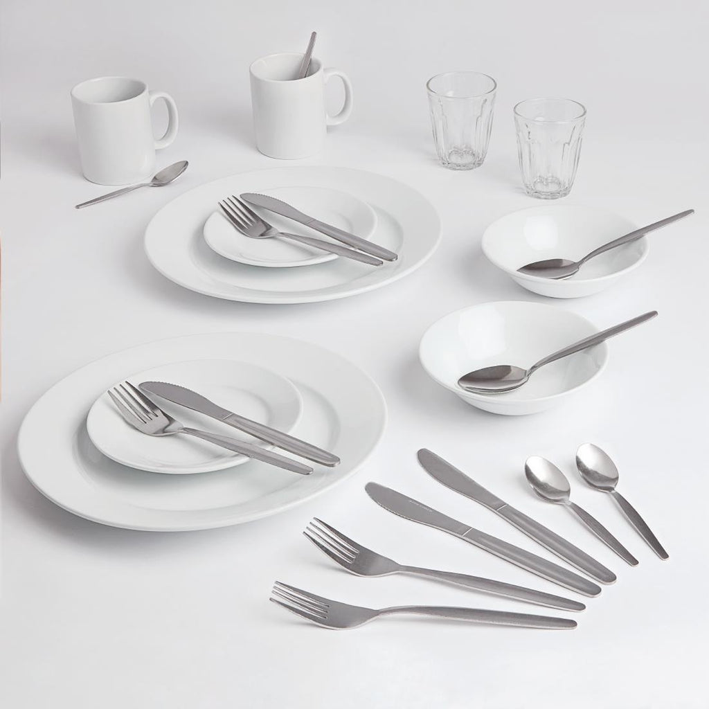 Stellen Sie sicher, dass Sie beim Einzug in ein Wohnheim, ein Studentenwohnheim oder eine andere Art von Universitätsunterkunft bestens vorbereitet sind, dank dieses erschwinglichen Geschirr- und Bestecksets für Studentenwohnheime. Das Besteck in diesem Studentenküchen-Starterpaket enthält Messer, Gabeln, Teelöffel und Dessertlöffel von Olympia Kelso aus Edelstahl und ist unglaublich langlebig und robust, sodass es den strengen Anforderungen des Universitätslebens problemlos gewachsen ist. Die im Lieferumfang enthaltenen Speiseteller, Beilagenteller, Müslischalen und Becher mit breitem Rand von Athena Hotelware zeichnen sich durch eine langlebige Superglasur und gerollte Kanten aus und sind außergewöhnlich stabil und äußerst splitterfest, sodass sie selbst in den hektischsten Studentenküchen eine lange Lebensdauer gewährleisten. 2 x 200-ml-Olympia-Becher aus gehärtetem Glas vervollständigen dieses Paket mit den wichtigsten Utensilien für Studenten und bieten Ihnen alles, was Sie für den Start in Ihr neues Leben an der Universität benötigen, zu einem bemerkenswert günstigen Preis.