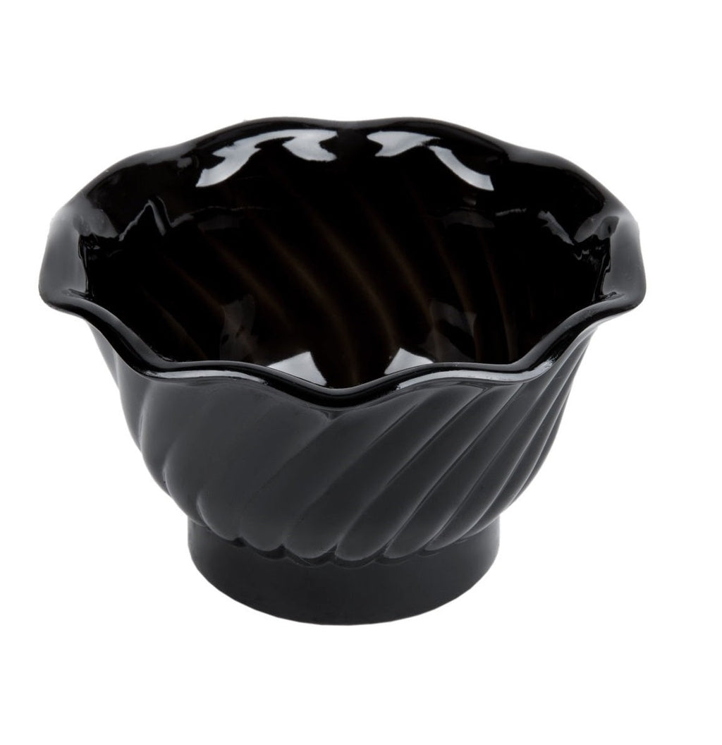 Introducing the Chef Set Swirl Bowl in Black, a perfect fusion of elegance and practicality. Designed for diverse food presentation needs, this 148 ml bowl is ideal for serving ice cream, side dishes, salads, and desserts. Its attractive swirl pattern coupled with a high gloss finish makes it a stylish addition to any buffet, deli display, or dining setup. Made from durable SAN plastic, this bowl not only ensures longevity but is also a breeze to clean, making it a staple for both commercial and home settings.