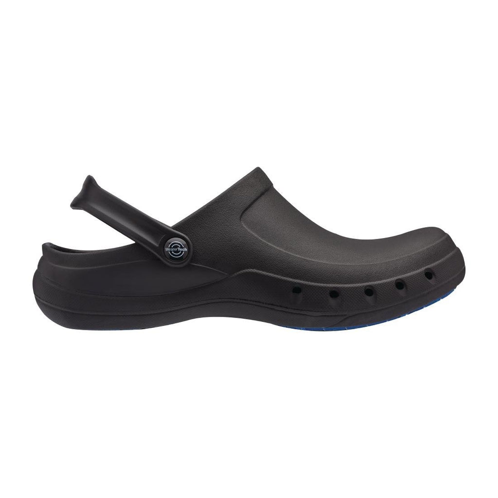 Suchen Sie Schuhe, die bequem bleiben, auch wenn Sie den ganzen Tag auf den Beinen sind? Dann sind Sie bei den schwarzen Revive-Clogs der Größe 12 von WearerTech genau richtig. Mit seitlichen Belüftungsöffnungen und gepolstertem Komfort, der sich der Form Ihrer Füße anpasst, halten die Schuhe Ihre Füße kühl und bieten individuellen Komfort. Dadurch wird sichergestellt, dass Ihre Füße auch nach längerer Zeit nicht wund oder müde werden.