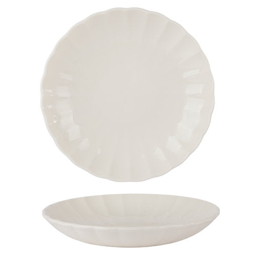 The East Deep Coupe Plate 25cm brings sculptural depth to the East Collection. Its gently curved coupe form and classic white scalloped embossment create a striking canvas for contemporary plating — ideal for sauced dishes, risottos, and refined sharing plates.