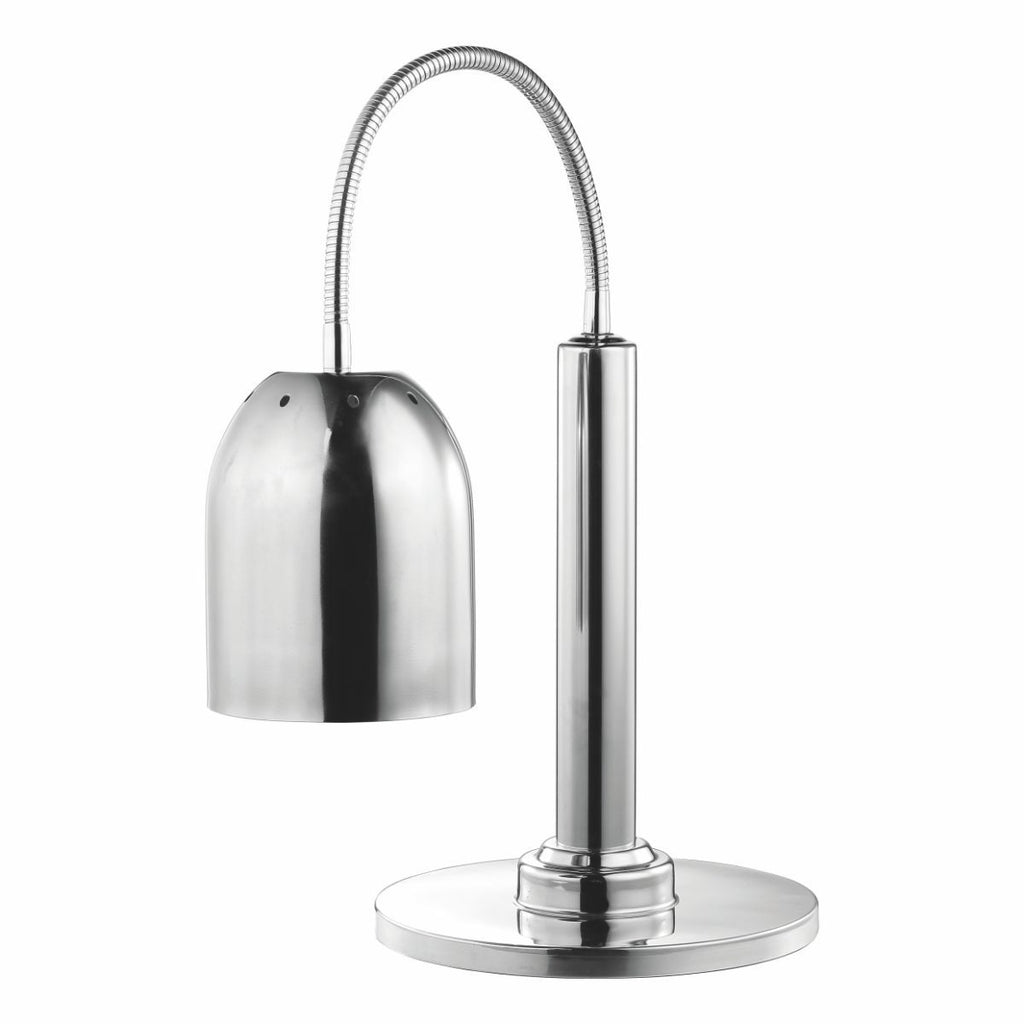 Keep your food warm with this stylish stainless steel heat shade; Retractable hanging heat shade; Adjust to your desired temperature by raising or lowering lamp; Bulbs not included