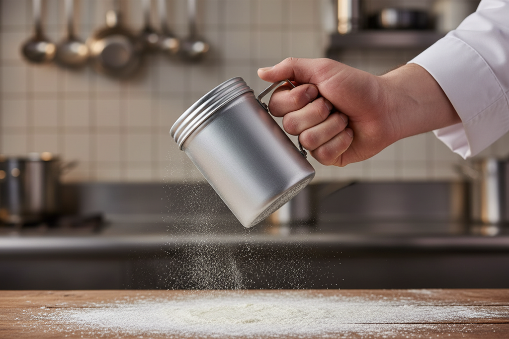 Ideal for: This aluminium dredge with handle is perfect for the pizzeria, coffee shop, diner, and virtually any other operation that needs sugar, spices, flour, and other condiments with this aluminium shaker!