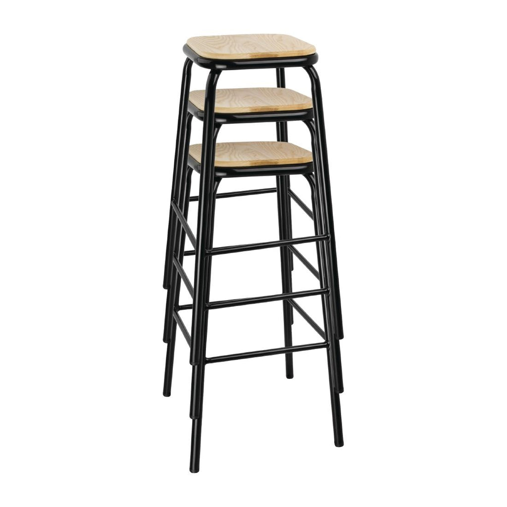 Bolero Cantina High Stools with Wooden Seat Pad Black (Pack of 4)