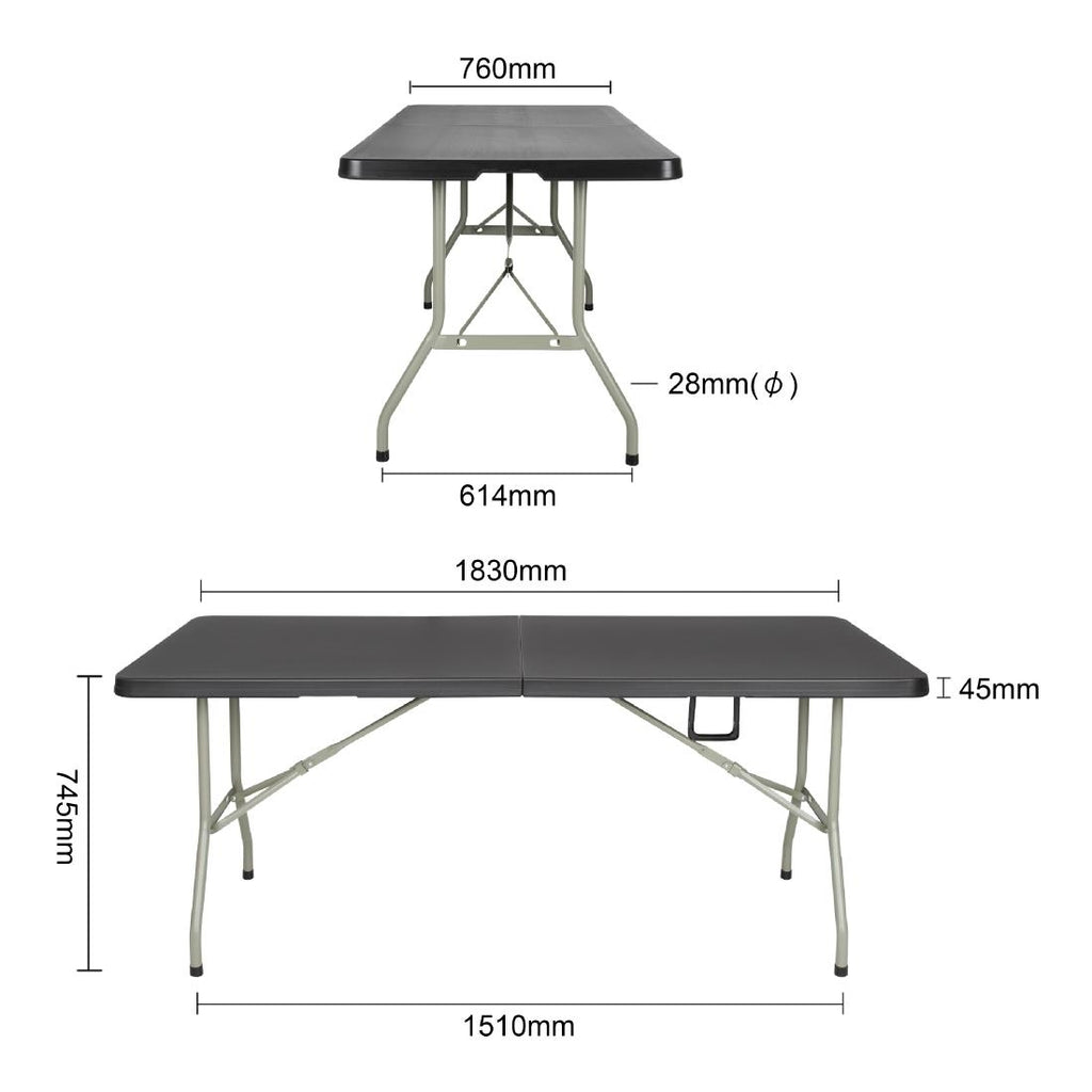 Bolero Rectangular Centre Folding Utility Table Black 6ft (Single)