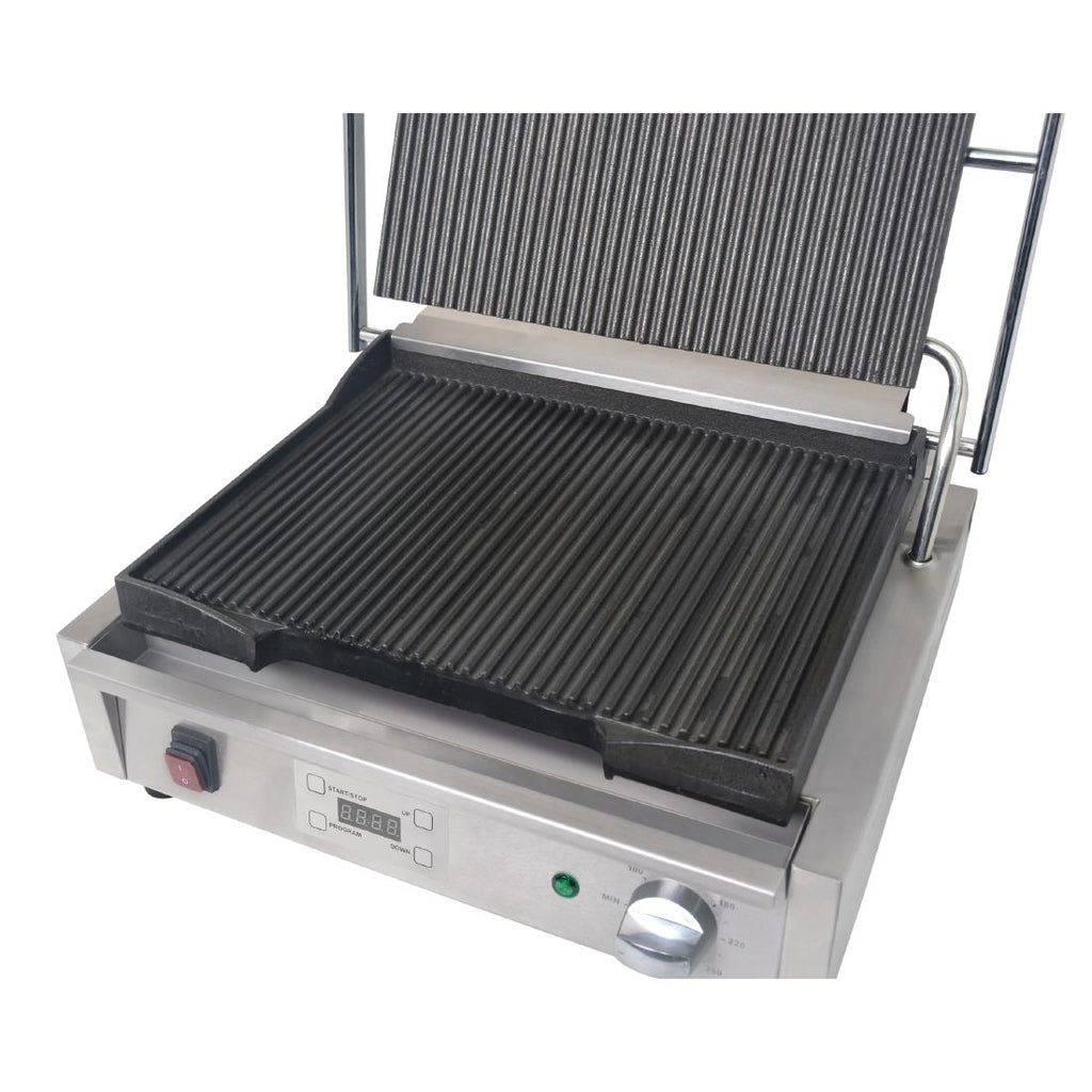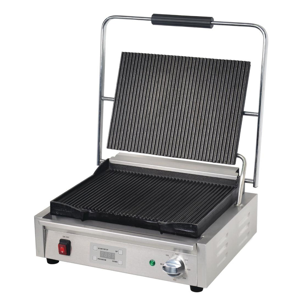 With its rapid heat-up and generously-sized cast iron grilling surface, the Buffalo large ribbed contact grill is a powerful and reliable addition to professional kitchens. Perfectly designed to produce great tasting food, the grill features accurate dial temperature control and a digital timer, so you'll always get consistent results, whether you're making traditional breakfasts or tempting takeaway snacks.