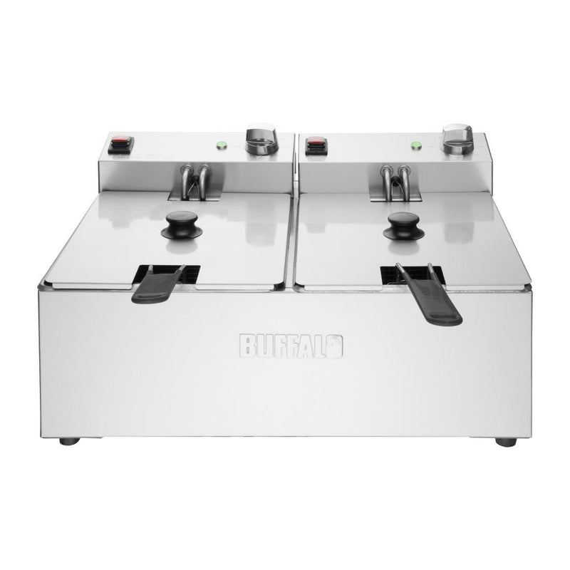 Powerful and reliable, the five litre twin tank, twin basket Buffalo countertop fryer is the perfect appliance for kitchens with limited space. Designed to be easy to use yet versatile, this fryer lets you produce deliciously crispy fried foods with ease, thanks to its dual 2.8kW elements and simple dial thermostat controls.