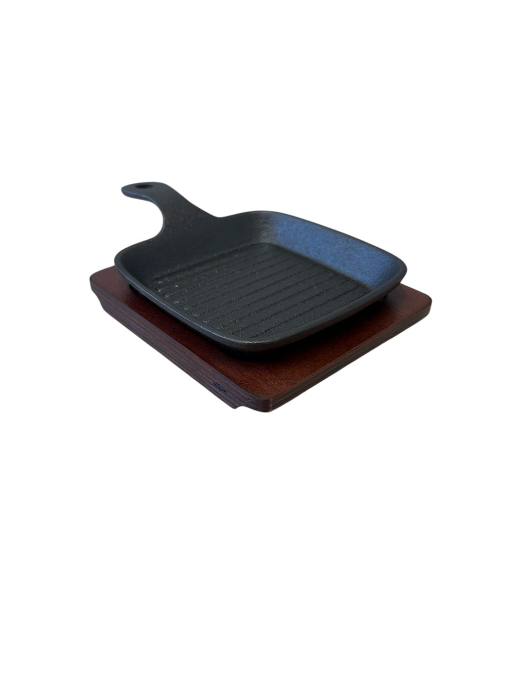 Elevate your culinary experience with the Chef Set Cast Iron Grill Pan. This expertly crafted 14CM grill pan is designed to warm quickly and evenly, ensuring that your food is cooked to perfection every time. The high-quality cast iron construction not only retains heat efficiently but also provides exceptional durability, making it an ideal addition to any kitchen. Whether you're using it on an induction hob or in the oven, this versatile grill pan ensures consistent results while adding a touch of style to your food service. The included wooden base enhances its appeal, making it a sophisticated choice for both cooking and presentation.