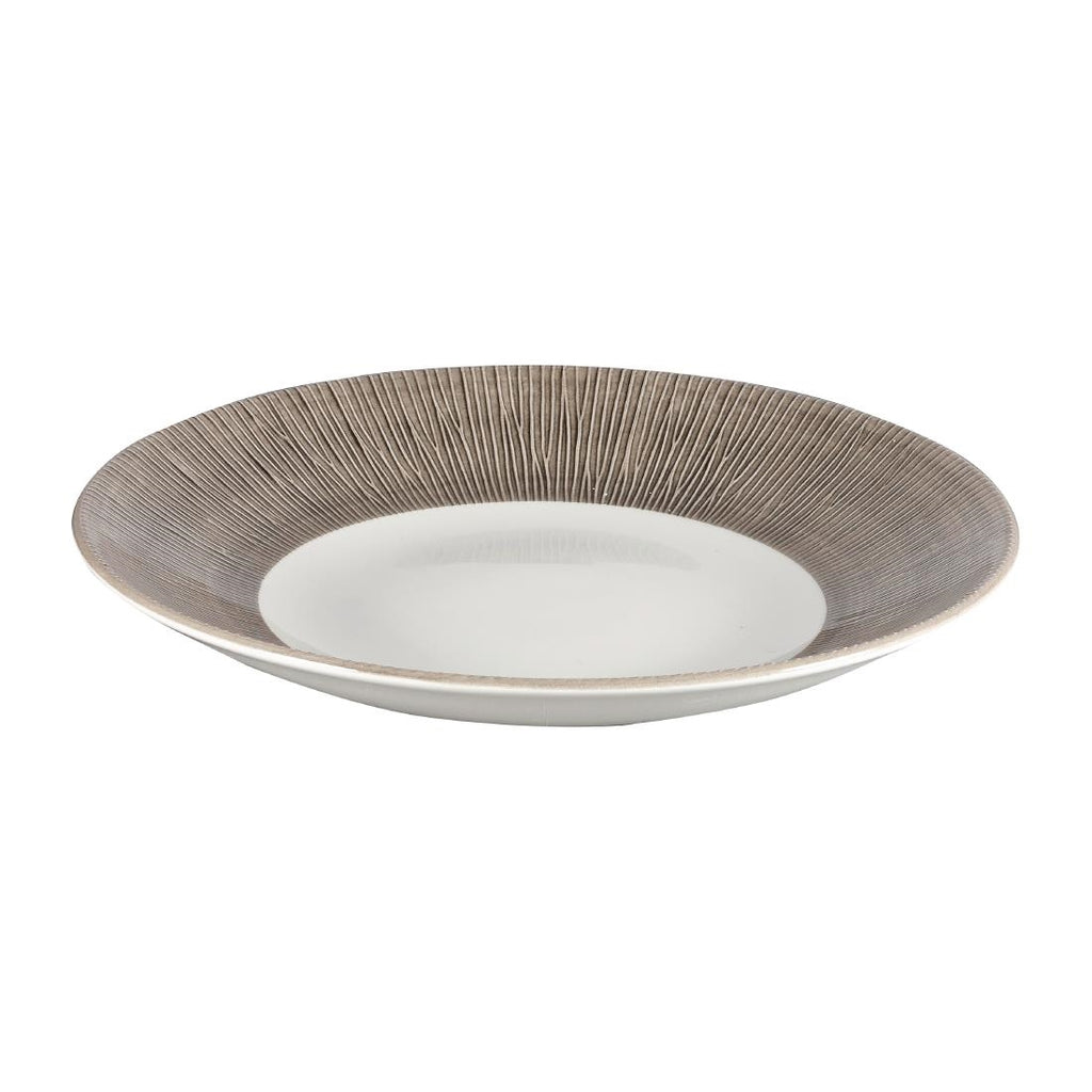 Versatile in use and design, Churchill's bamboo coloured deep plate helps you get the very best out of any service. The elegant design of brown and white with a raised textured outer frame complement your meals and make sure they are well centred when plating up every time. Present confidently, solid in the knowledge each super vitrified plate is durable against high heat and designed for daily professional use. This durability means you can reduce damage and breakages and save time and money on buying replacement plates.