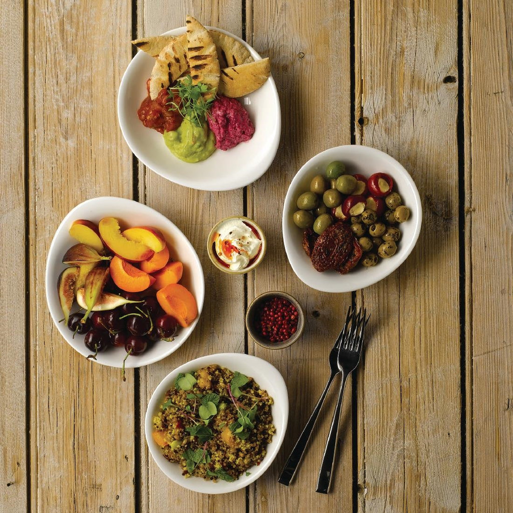 White crockery pieces from the Bit on the Side collection by Churchill. Ideal for sides, salads and much more. Super vitrified, microwave and dishwasher safe. Sold in packs of 12.