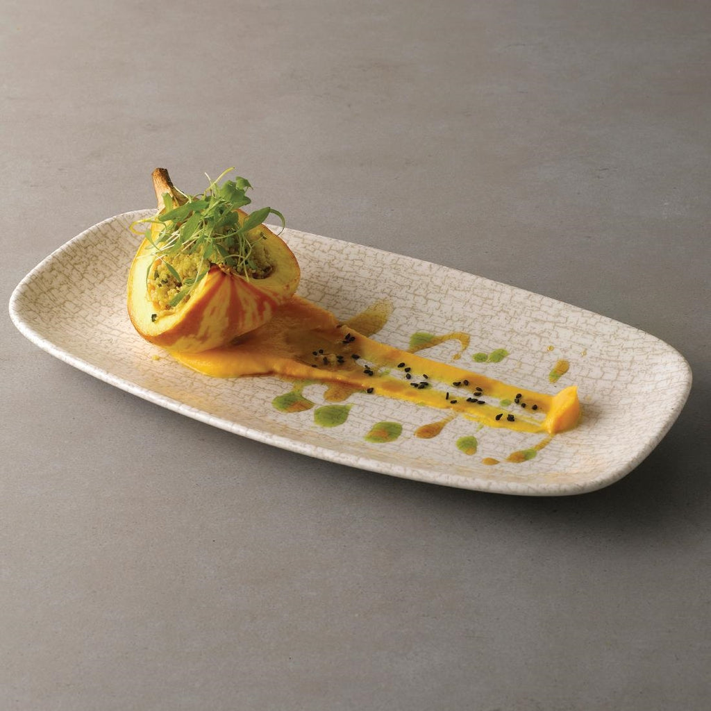 Big, bold chef plates inspired by the cracked look of artisan pottery. Printed finish remains striking from first to last use.