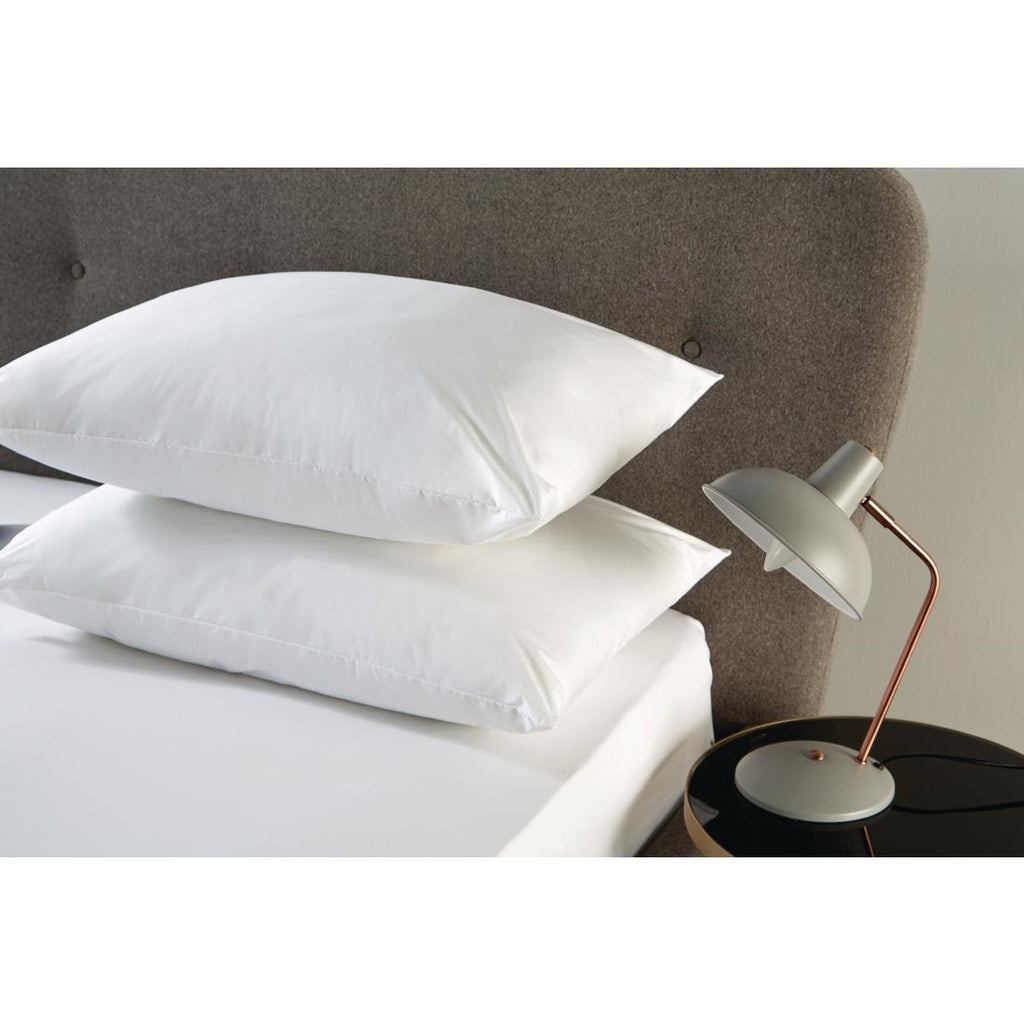 Made from recycled plastic bottles, the comfortable and eco-friendly hollowfibre filling of the Mitre Eco Pillow is kind to the planet, without being unkind to your guests. The perfect way to upgrade your bedding without harming the environment, each pillow requires significantly less power and water to produce than a standard pillow, and emits much less CO2 in its manufacture. And all this without any drop in the durability Mitre products are know and loved for. With a soft pillow available too (HD215), Mitre Eco gives you everything you need to upgrade your bedding with a clean conscience today. OEKO-TEX 100 rated to be as kind to your guests' skinas it is to the planet.